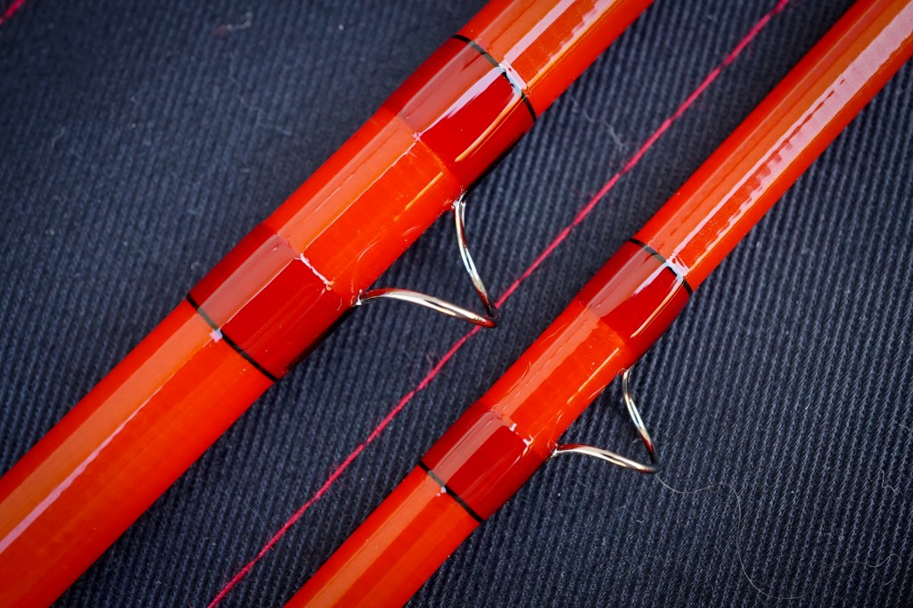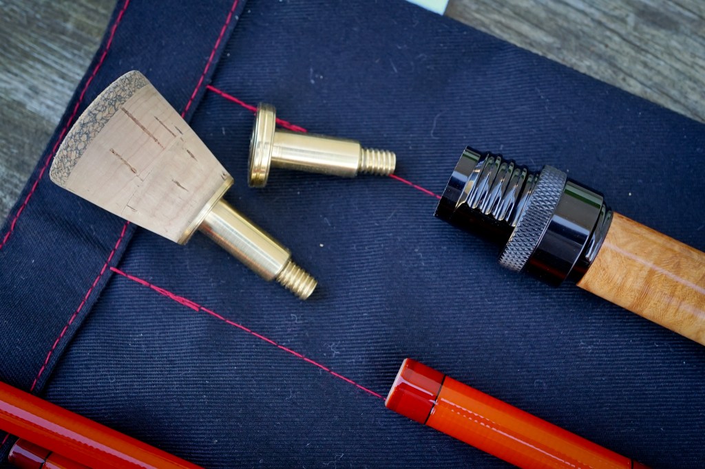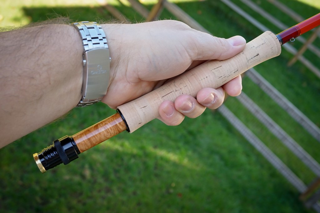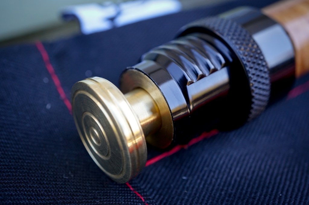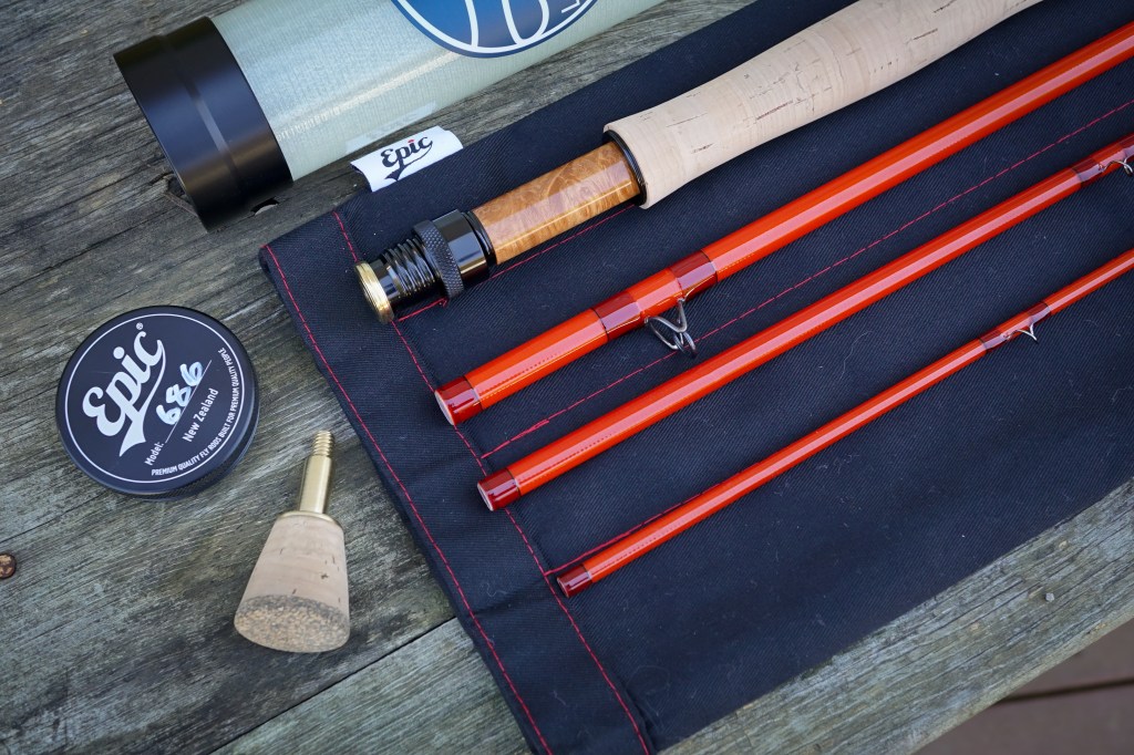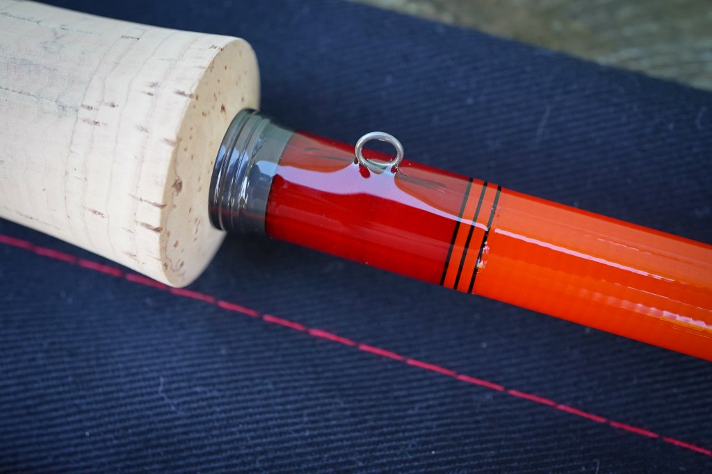 Up for grabs is a recently finished Epic 686 Salsa. Rod is finished with a 6.5″ full wells grip, maple burl seat, and Lemke uplocking hardware. This rod also has a little secret… a shop-made removable fighting butt. The rod has a brass machined sleeve installed inside the seat and hardware. The standard butt cap and fighting butt are both constructed of solid brass and add a nice bit of counterweight to help balance this bigger rod. Wraps are a rust-red tipped black. Glass Epic bag and tube included.